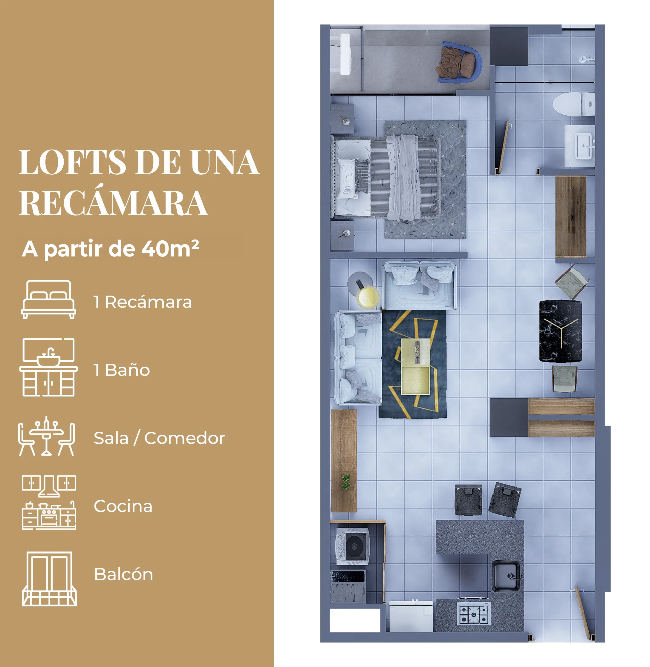 Disfruta de tres niveles de amenidades diseñadas para enriquecer tu estilo de vida: Alberca al aire libre, gimnasio equipado, spa para mascotas, biblioteca de objetos, terraza con asadores, lounge panorámico, guest suite para visitantes.